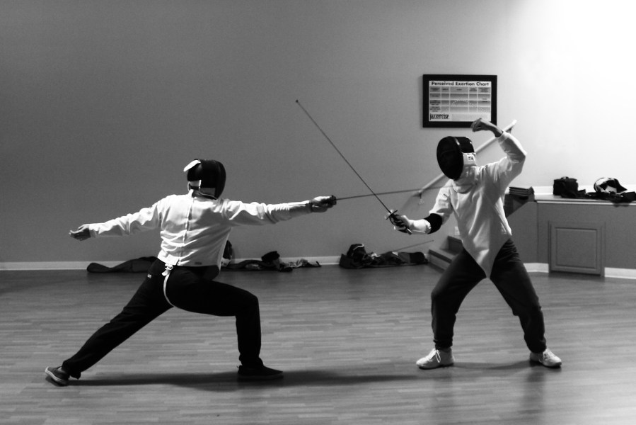 Scott parries Nason’s attack. Fall, 2012. Photo by Ella.