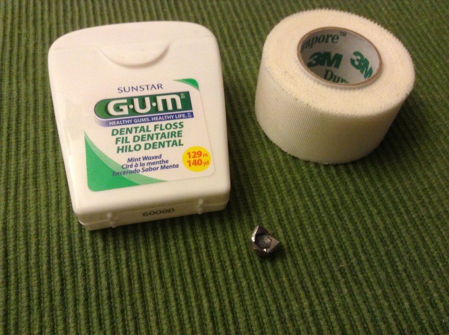 Waxed dental floss (regular, not teflon type) and a bit of medical tape are used to mount the point d’arrêt.